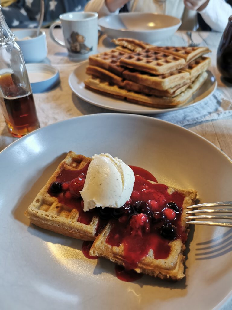 Essen braucht Zeit. Das können meine Kinder nicht immer nachvollziehen und das ist auch OK. Wenn meine Jüngste Waffeln möchte, dann jetzt. Sofort. Und wenn es Widersprüche meinerseits gibt, bekomme ich ein wütendes Stirnrunzeln zurück. „Warum nicht!?“, ertönt es dann vorwurfsvoll. Und dann beginnen wir zu plaudern. Was gehört alles in einen Waffelteig? Butter und Milch von der Kuh, Eier von Hühnern und Mehl. Getreide muss ruhen, damit es besser für unseren Bauch wird. Und wenn wir einen schmackhaften Teig haben wollen, der nicht nur den Bauch füllt, sondern auch unser Gehirn und unsere Muskeln versorgt, dann fühlen wir uns nicht nur stark. Wir sind es auch.